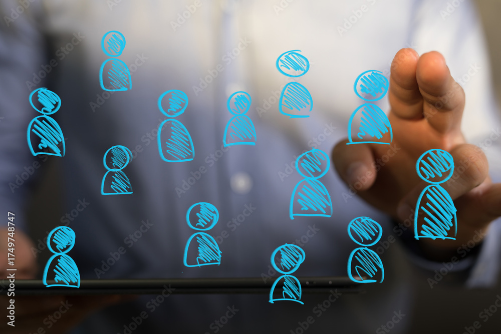 Conceptual image of teamwork, connection, and digital collaboration. Ideal for business, technology, and HR.