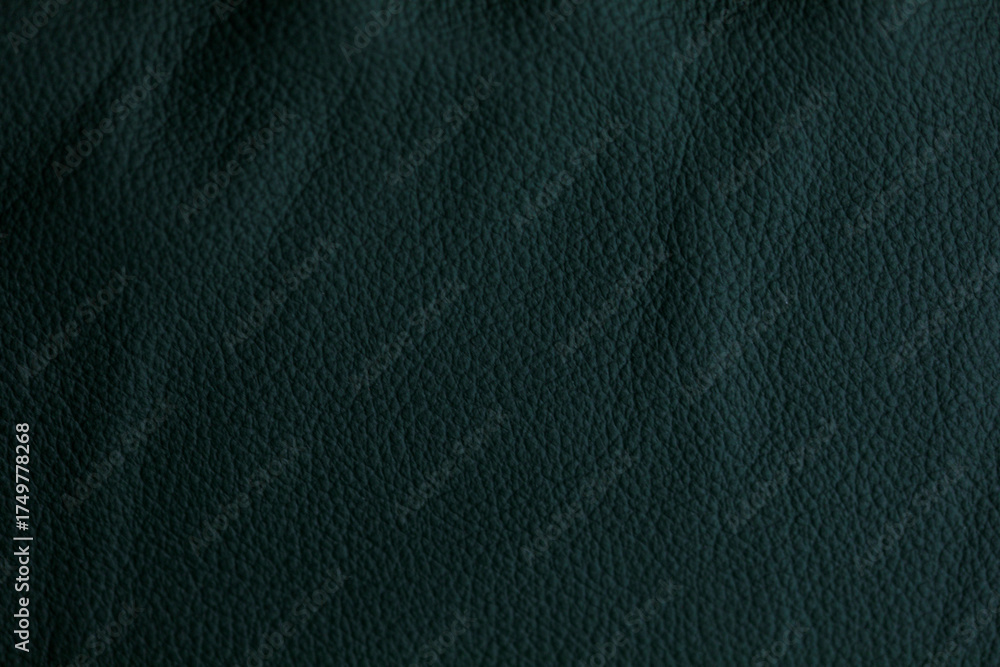 Close up of a dark teal leather texture. Textured surface for luxury fashion design, elegant backgrounds, upholstery concepts and lifestyle.