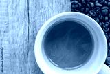 Rising Coffee Prices Concept with Cup and Spilled Coffee Beans on Wooden Table