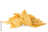 A pile of cheese covered tortilla chips isolated on white background. Nachos mexican cuisine.