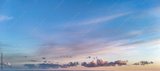 A serene sky with soft clouds and pastel colors during sunset creates a tranquil atmosphere. Perfect for landscape and nature themes in various content.