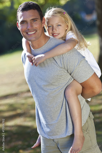Happy Father Giving Daughter A Piggy Back In Green Park