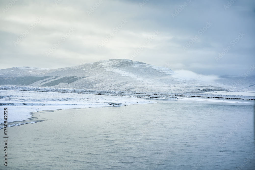 View of Landscape of snow weather along with the road trip for travel in Iceland.