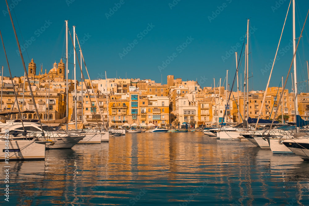 Birgu Waterfront, Malta – Boats, Historic Cathedrals and Old Town View