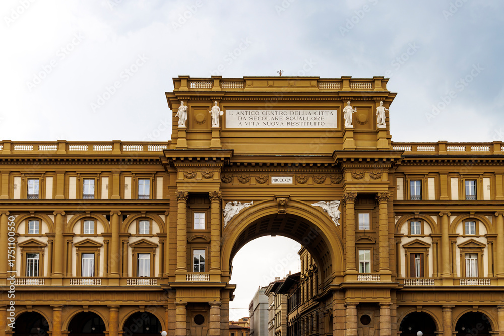 Triumphal arch on Piazza della Repubblica of Florence, Tuscany, Italy, Europe