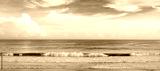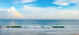 Tranquil Seascape With Gentle Waves Rolling Onto Sandy Beach Under Clear Blue Sky Horizontal