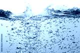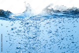 Splashing Water Wave. Air Bubbles Float Up in water. Pure Drinking Water, Oxygen Relaxation. Blue Water Textured on White Background.