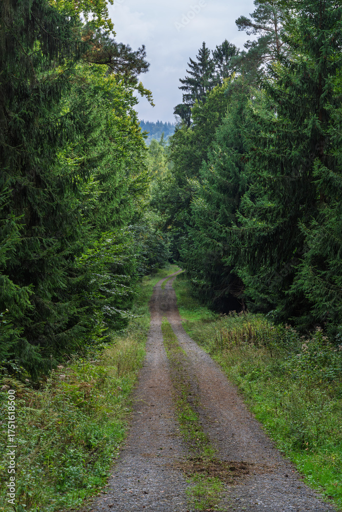A Serene Gravel Pathway Flowing Gracefully Through the Lush Green Forest Landscape