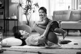 Indian Mother and baby playing see saw on carpet, sharing joyful and loving moments indoors