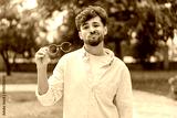 Young Arabian handsome man with glasses at outdoors with sad expression