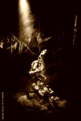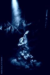 Beautiful woman wrapped spider web over black background. black and white photo. halloween, decoration and mystic