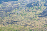 New growth of trees on grassland savanna volcano Mount Batur Bali after forest fire dry season burn disaster