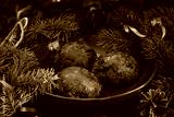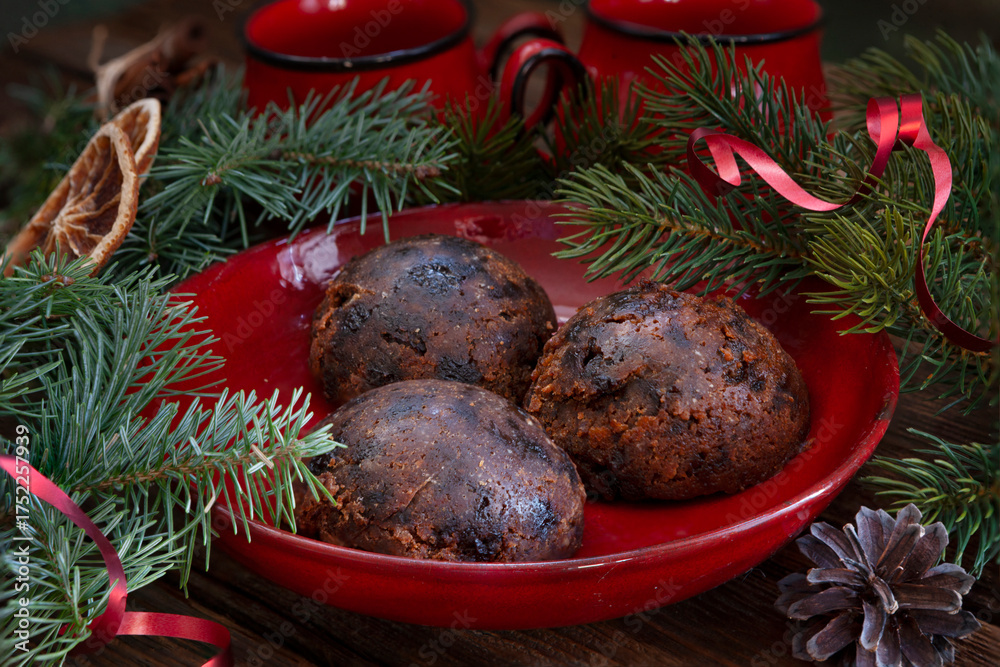 Traditional homemade English Christmas puddind portion