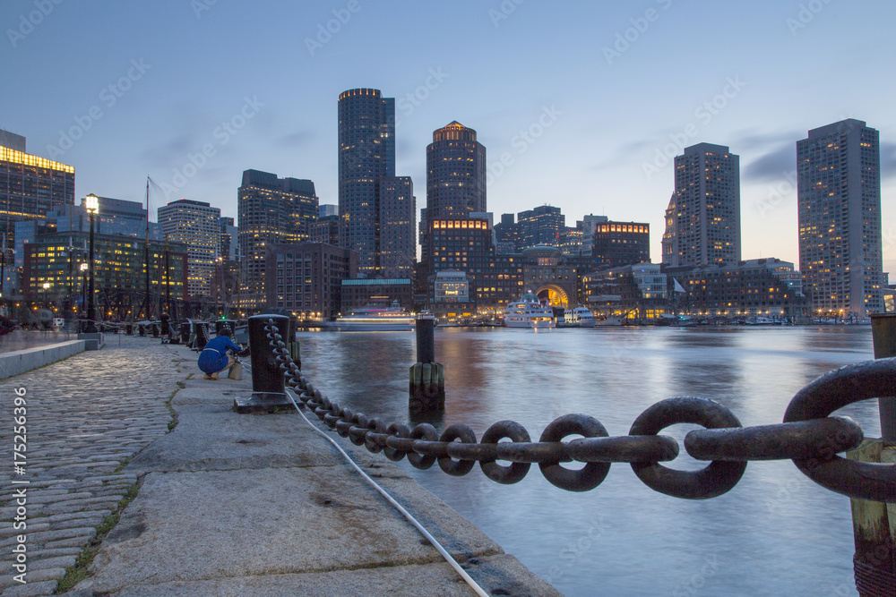 Boston, Skyline of Boston's Financial District at sunset