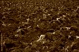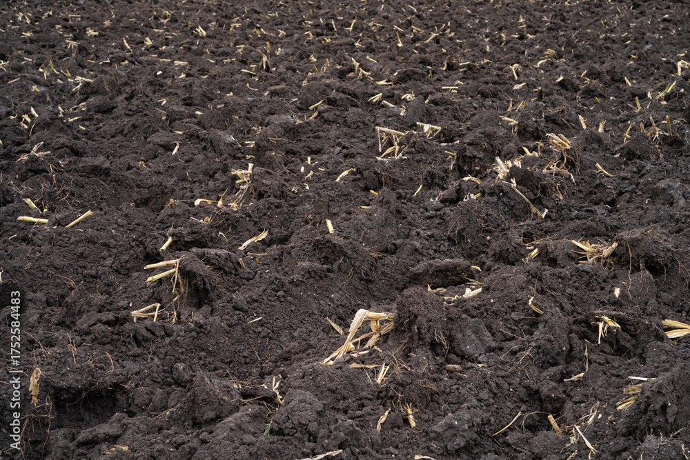 Plowed agricultural field after sugarcane harvest with rich brown soil prepared for new planting. Food security, soil health, and sustainable farming landscape in rural countryside. World soil day.