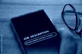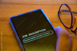 Man filling out the job description page on his mobile phone as social media content creator. Selective focus on the display.