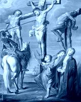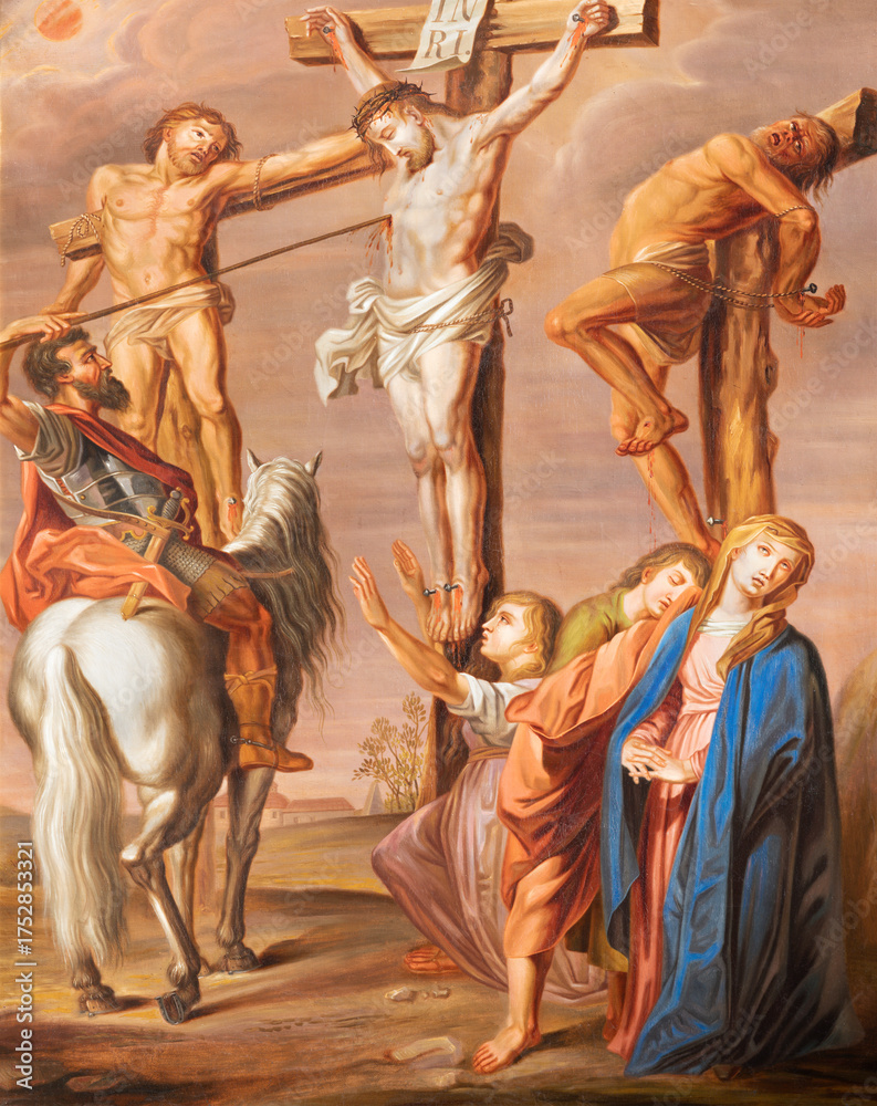 SALZBURG, AUSTRIA - SEPTEMBER 6, 2025: The painting of Crucifixion in the church Pfarrkirche Mülln by unknown baroque artist.