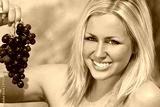 Beautiful Young Blond Woman Eating A Bunch of Grapes
