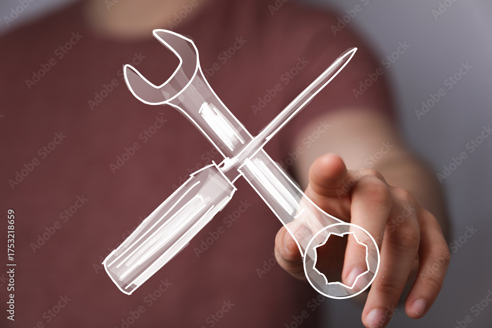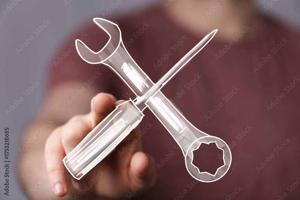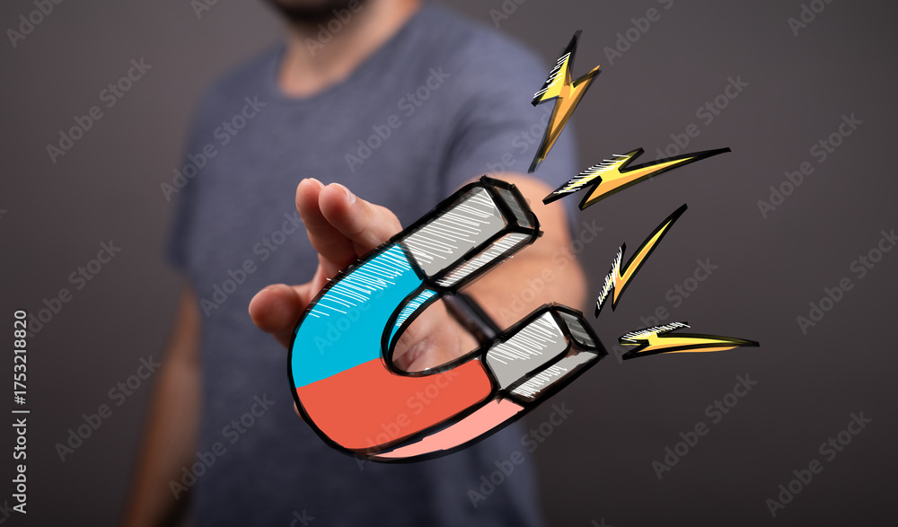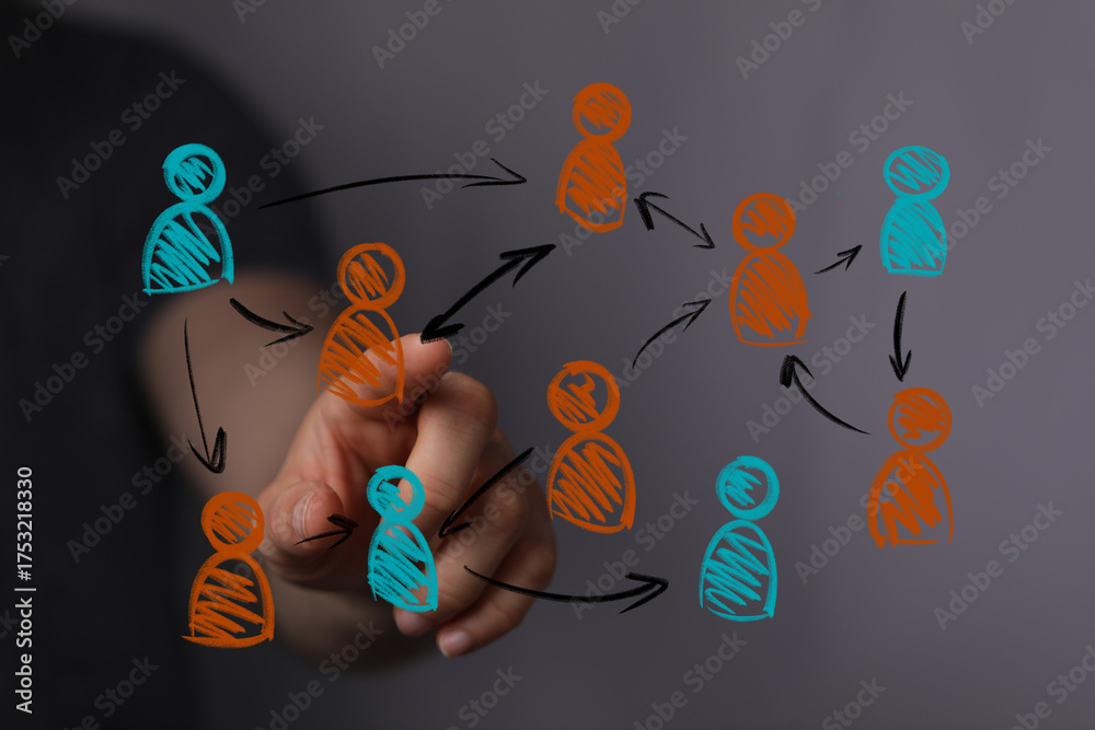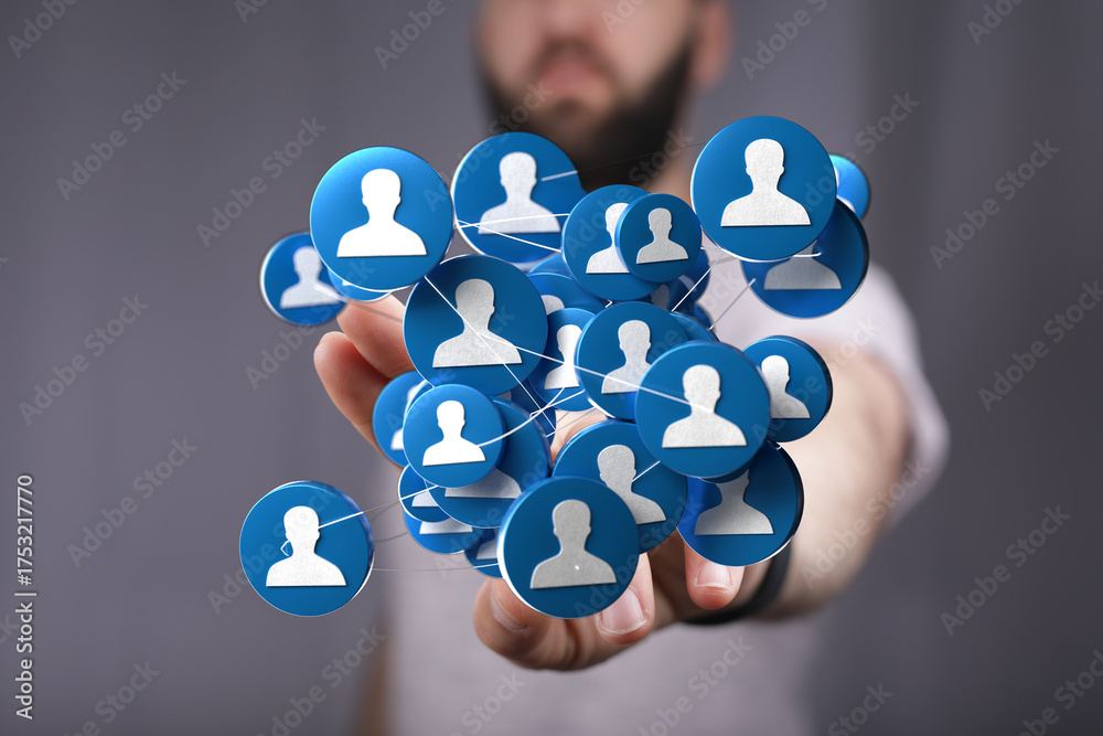 Man holding social network connection in his hand. Conceptual for HR, teamwork, relationships and social media. Future connection concept.