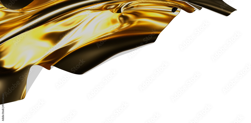 Abstract golden fabric wave with a white background, perfect for use in design projects, presentations, and creating luxurious visual elements.