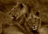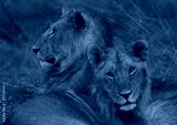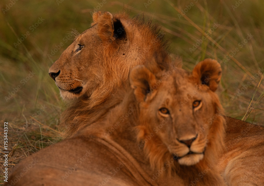 A pair of male lions seperated from Rongai pride relaxing at Masai Mara, Kenya. selective focus on the back