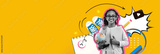 A cheerful student stands proudly with a globe and school supplies. The colorful background features playful designs and elements related to education, creativity, and learning.