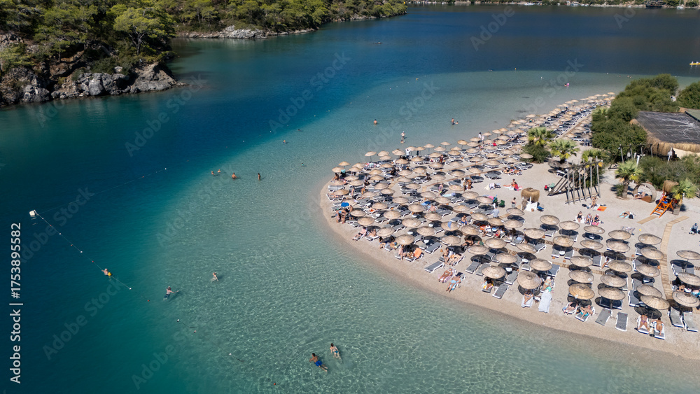 Aerial view of the famous Blue Lagoon beach in Oludeniz, Fethiye, Turkey