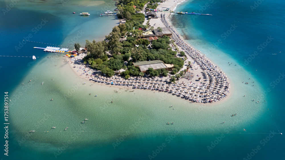 Aerial view of the famous Blue Lagoon beach in Oludeniz, Fethiye, Turkey