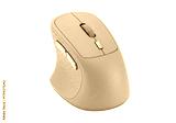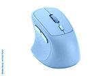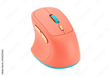 Isolated ergonomic computer mouse in coral color with aqua blue trim for right-handed users