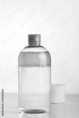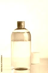 Minimalist scene featuring a two-phase makeup remover with oil and cotton pads