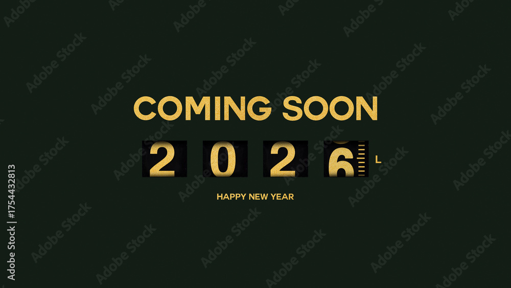 Coming soon 2026. Waiting For 2026 New Year. Gasoline meter 2026, creative idea. Fuel column, concept. Counter golden 2025 changes to 2026 on dark green background. Happy New Year