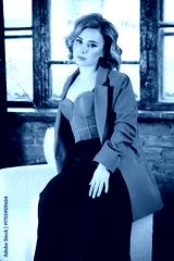 a young woman posing in a photo studio