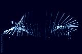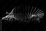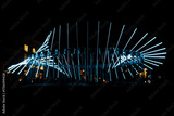 The fascinating night scene captures a modern light installation that dominates the space with a futuristic aesthetic and consists of a number of diagonally arranged led tubes in a circular formation.