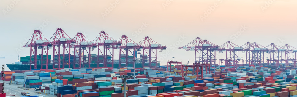 port of shanghai yangshan at dusk