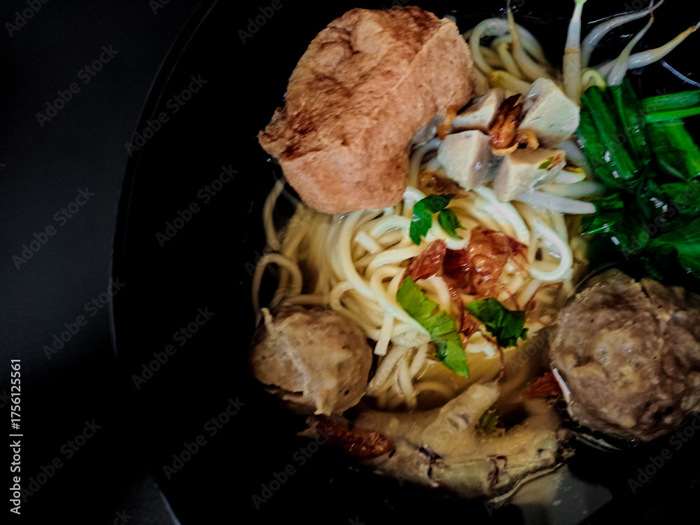 Indonesian Meatball Noodle Soup with Tofu and Vegetables