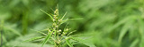 Close-up of flowering cannabis plant with lush green leaves in natural setting.