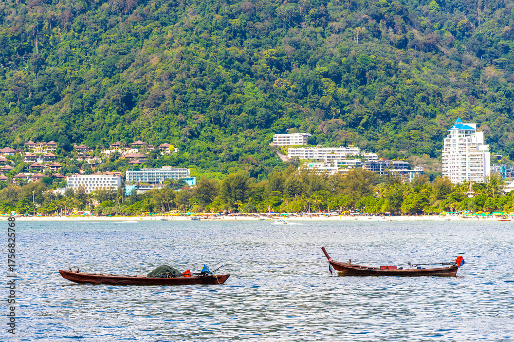 Longtail boat long tail boats at the Patong Beach Thailand.