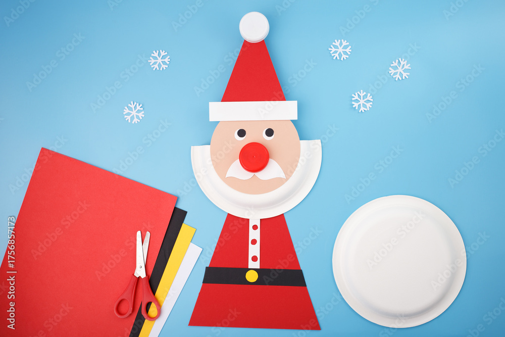 Christmas craft project with handmade Santa Claus using paper plate and colored paper, ideal for holiday marketing, DIY blogs, kids activities, school events, and creative workshops