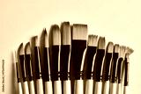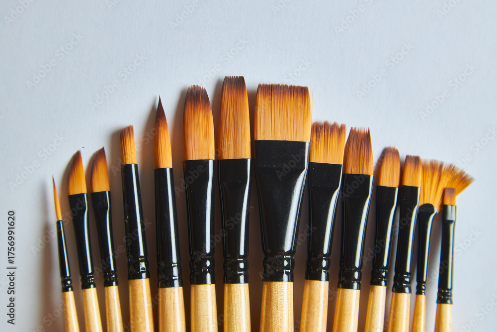 A set of artist's paintbrushes on a white background with copy space.