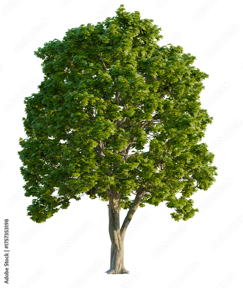 Castanea tree, font view, elevation, cutout, isolate, transparent background, Vibrant tree with lush green leaves, ready to add life to your design project