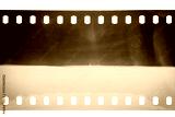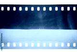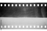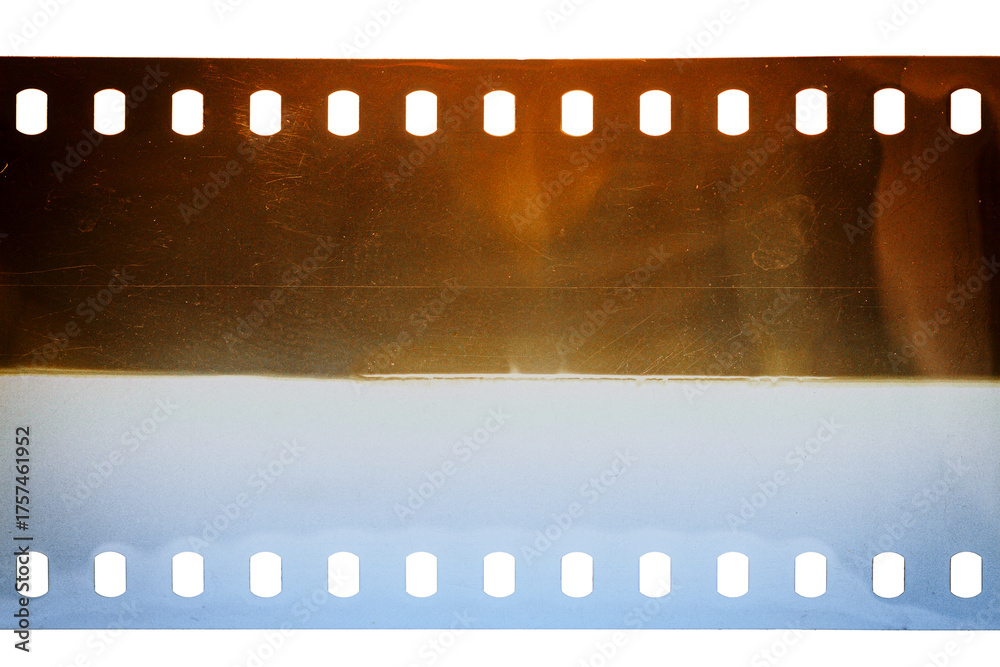 Dusty and grungy 35mm film texture or surface. Perforated scratched camera film isolated on white background.
