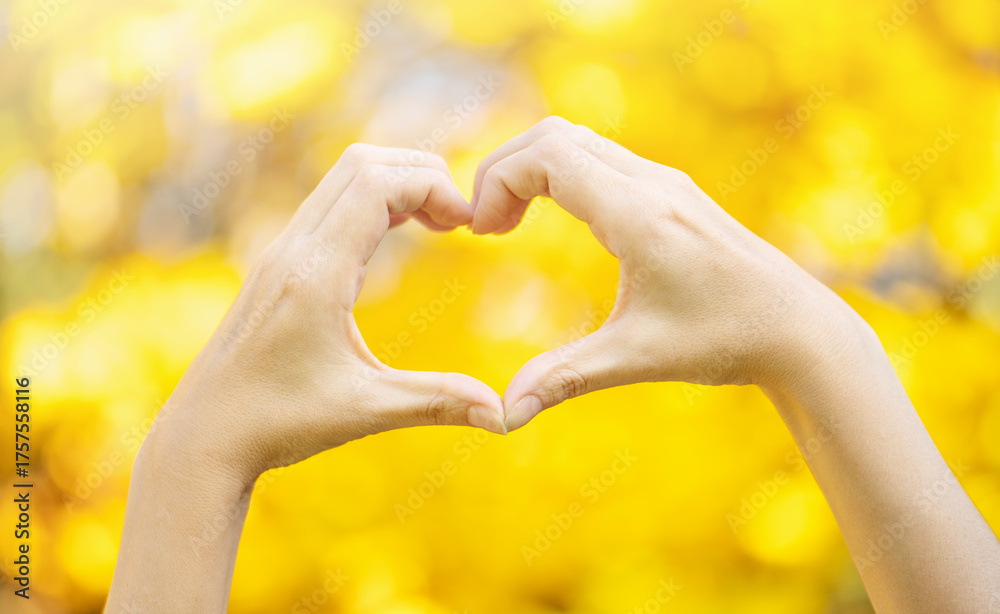 Hands in heart shape framing on nature background