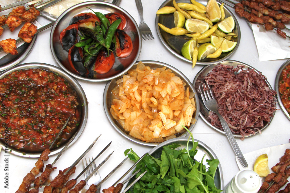 Abstract green bokeh background with soft light circles and blurred texture in various shades.