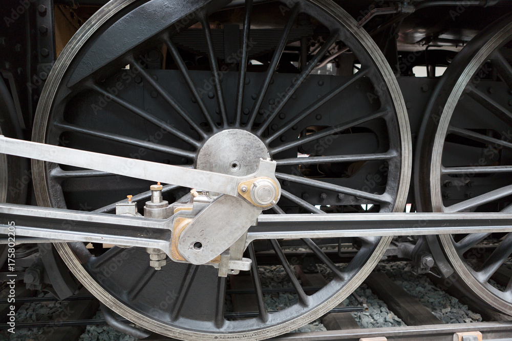 wheels of the old black locomotive close-up