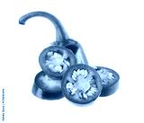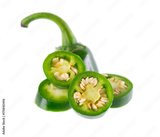 Fresh jalapeno pepper isolated on white background. Slices of green hot serrano pepper. Clipping path.