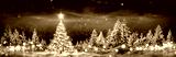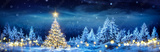 Christmas Tree On Snow - Winter Fir Forest At Night Forest - Pine Tree With Gift Boxes And With Shiny Star In Blue Landscape And Abstract Bokeh Lights