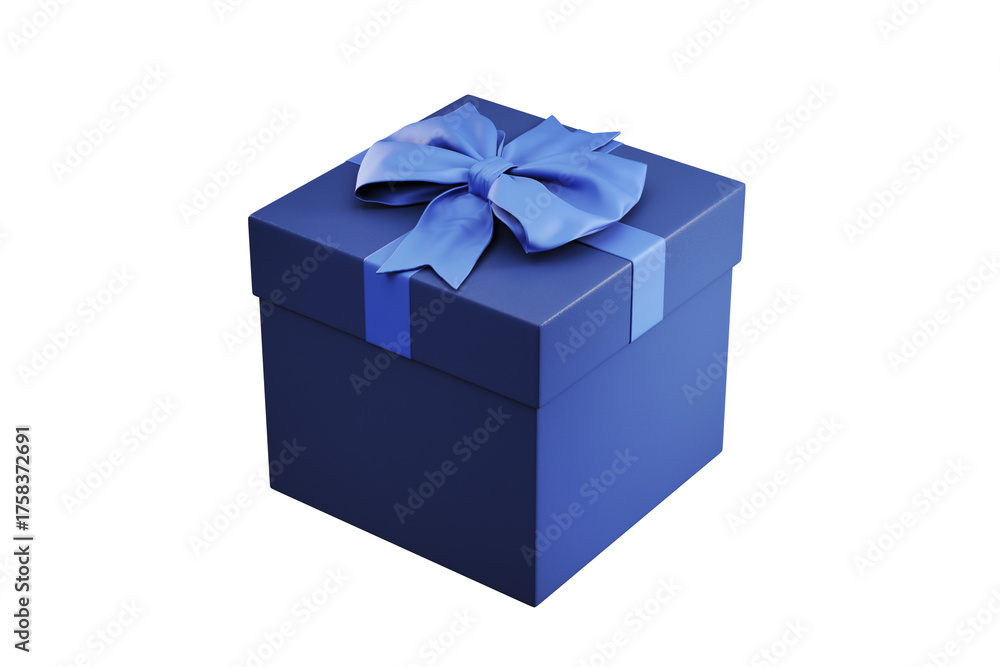 Blue present with bow tie isolated on white background. Birthday gift with ribbon decoration. Holiday and shopping giftbox package.