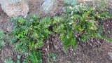 dense green foliage of polystichum polyblepharum (korean tassel fern) growing on the coastal forest floor