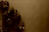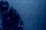 Black Friday background with a striking red gift with black ribbon and three small black gifts on a red background for sales text.