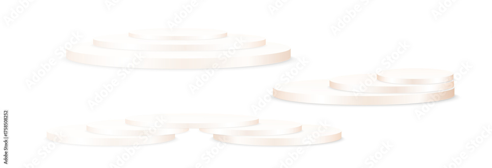 Podium, empty pedestal with light for awarding, prize giving, honor vector png. A stage display case for displaying cosmetics or other products. Product advertising stand.